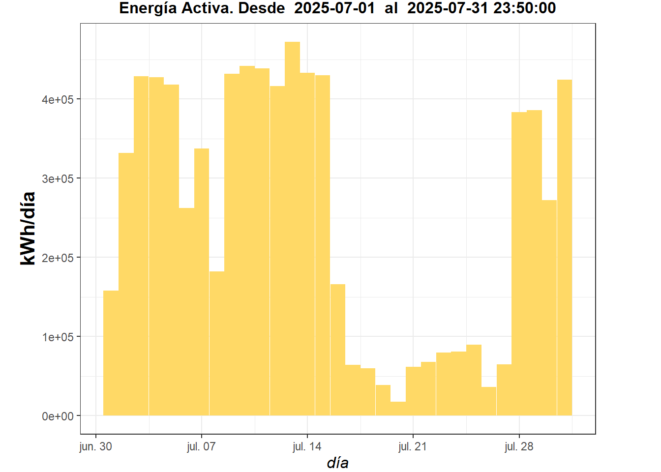 • El consumo promedio diario de energía fue de 254,940.14 kWh, el mes pasado fue de 353,921.55 kWh.