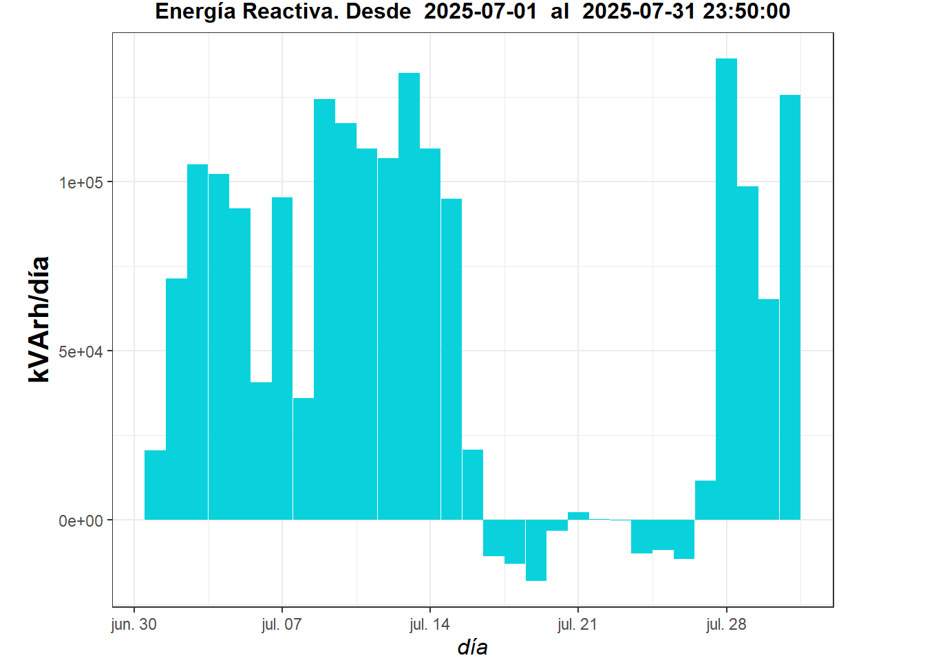 • El factor de potencia promedio, calculado a partir de las energías, fue de 0.98 (frente a 0.96 el mes pasado). Sin embargo, tuvo momentos con factor de potencia en adelanto, lo cual es inadecuado.